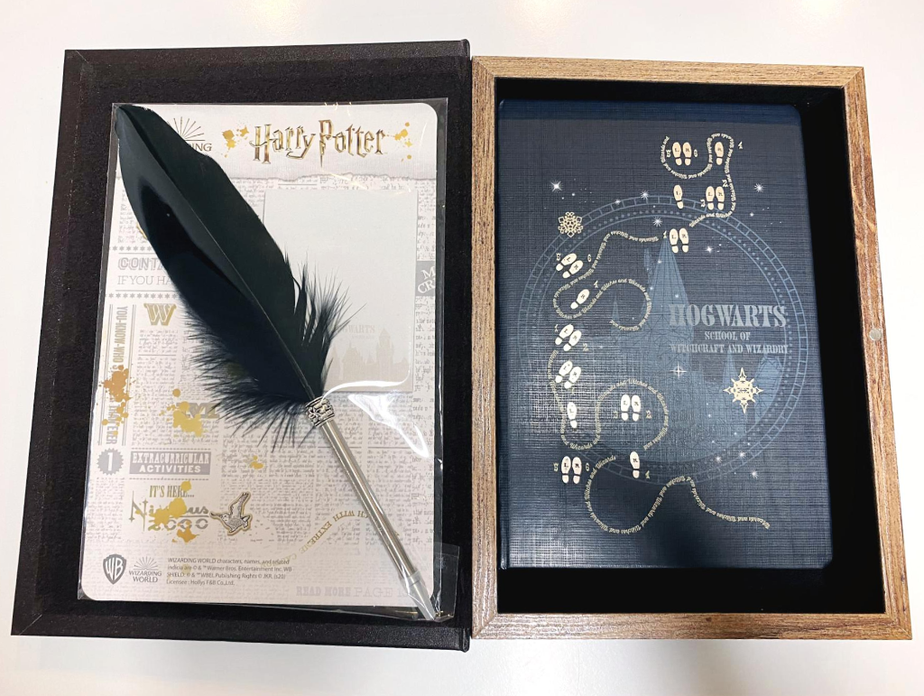 해리포터에 나왔던 비밀지도를 모티브로 해서 만든 다이어리 표지. 나 역시도 해리포터를 좋아하기 때문에 솔직히 스타벅스 다이어리보다 더 끌리긴 했다. 게다가 저 깃펜을 보라. 저걸로 주문쓰면 실현될 것 같다.