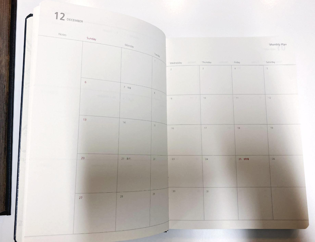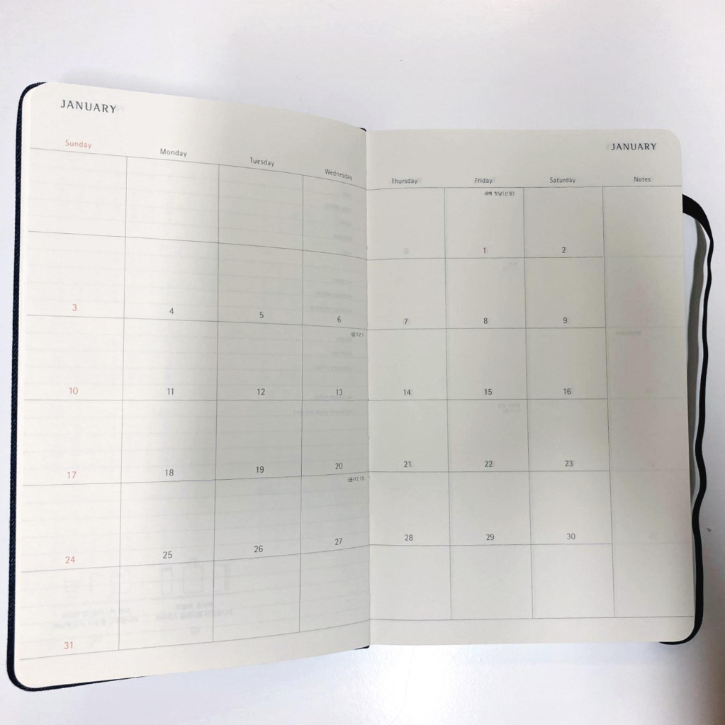 내부는 일반 다이어리와 크게 다르지 않고, 있을 건 있는 구성으로 전체적으로 무난했다.