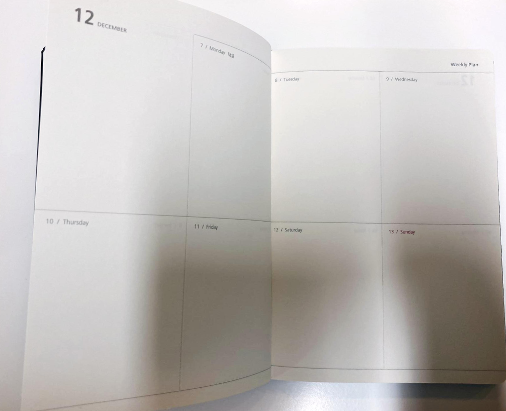 주간계획은 할일만 목록으로 해서 체크할 수 있게 간편하게 구성되었다. 주간 계획을 간단하게 쓰는 입장에서 마음에 들었다.